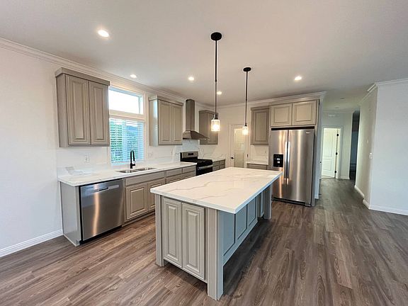 Beautiful new 3 bed, 2 bath, Energy Star home featuring 9-ft ceilings, crown molding, and open living areas. The kitchen offers quartz counters, island, pantry, and new stainless appliances. Laminate flooring throughout main areas with carpeted bedrooms. Primary suite includes solid surface counters, elegant stall shower, and linen storage; hall bath with tub/shower combo. Nice-sized bedrooms, room for a garden, and modern comfort throughout. *The above information including square footage is based on data received from the seller and /or from public sources. This information is deemed reliable but has not been independently verified and cannot be guaranteed. Prospective buyers are advised to verify information to their own satisfaction prior to purchase. Land lease community Pictures may not depict exact home details. Manufactured/Mobile Home DEALER #DL1247550