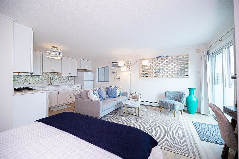 This well-maintained studio condo is ideally situated just across the street from sandy North Beach in Hampton. Situated on the second floor, this end-unit has incredible water views and overlooks a private pool reserved exclusively for owners and guests. Featuring bright and sunny interiors and recently renovated, it has a fully equipped kitchen with quartz countertops, a spacious refrigerator, and a modern oven/stove and range hood, a fully modernized bathroom, upgraded air conditioning, and new Smart TV. Being offered fully furnished with new upgrades from 2021, it’s complete with a sofa, dinette table/chairs, coffee table, queen-sized bed, and there are even a deck table/chairs and well-maintained linens/towels included too! This condo also has access to on-site laundry facilities and 2 designated parking spaces. It’s an excellent opportunity for rental investors, vacationers, or those seeking a year-round residence! Additionally, one pet is permitted if the unit remains owner occupied. Don’t overlook the chance to own this fantastic space in a highly sought-after location! Initial showings begin @ 1st open house. #1. Friday May 3 @ 4:30-6:30pm, #2. Saturday May 4 @ 11:30-1:30pm, #3. Sunday May 5 @ 2:00-4:00pm. Offers being reviewed Monday, 5/6/24 @ 3pm. Seller reserves the right to accept offers prior to offer review deadline.