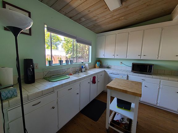 Private backyardTile counter topsPlenty of storage spaceSpacious kitchenWood floorsWall heating unitDouble sinks