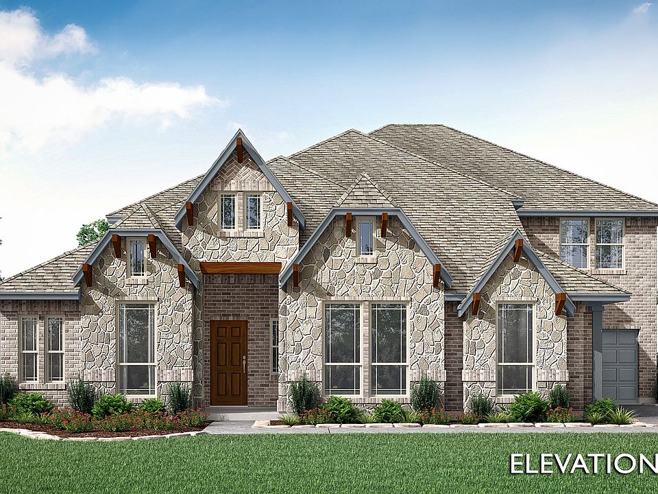 Stone-to-ceiling fireplaceCedar garage doorsBrick and stone exteriorOpen-concept floor planQuartz countertopsLarge extended covered patioGenerously sized homesite