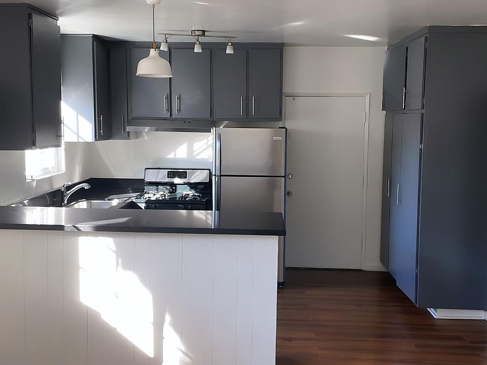Studio apartment in prime Koreatown neighborhood. Bathroom (new sink vanity, new faucet, new tub/shower, new toilet, new designer tiles & fixtures), Kitchen with brand new kitchen cabinets with a granite counter tops, stainless steel sink & new appliances (Includes dishwasher, fridge, range, microwave/hood, garbage disposal). On-site laundry. Bright, front unit with HUGE windows, new WOOD flooring throughout the entire unit. Excellent location, in Korea Town near Mid City, Downtown LA, Silver Lake, Echo Park and Los Feliz. Parking space in gated garage with remote entry.Available now! Please email or text me to arrange a time to view the unit. Owner pays for Trash and Water.