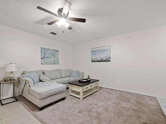 This home offers peace of mind with a 2021 roof,2024 hot water heater, and an 2020 insulated HVAC system. Key features include: - Vinyl siding exterior - Rain gutters - New front and rear entry doors - New storm doors - Spacious 2-car garage with pull-down attic space, the home features tile and carpet flooring, a skylight, and 2 new ceiling fans . The kitchen is equipped with a new light fixture . Both bathrooms have updated toilets , and the property includes new outdoor lighting. Move in with confidence, knowing all major systems have been recently updated. Situated on a no thru traffic street with low HOA annual fees, this home offers a one way in one way out sense of security. You're just minutes away from major retailers like Walmart, Lowes, and Sams Club, grocery shopping at Winn Dixie, and a quick bite at Chick-fil-A. This home combines convenience, comfort, and modern updates, making it a perfect fit that's easy and simply yours.