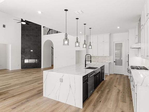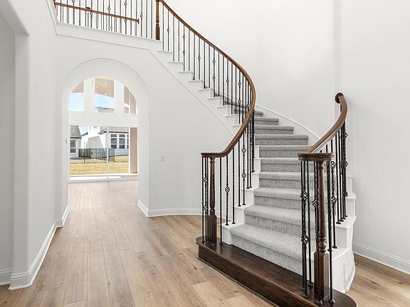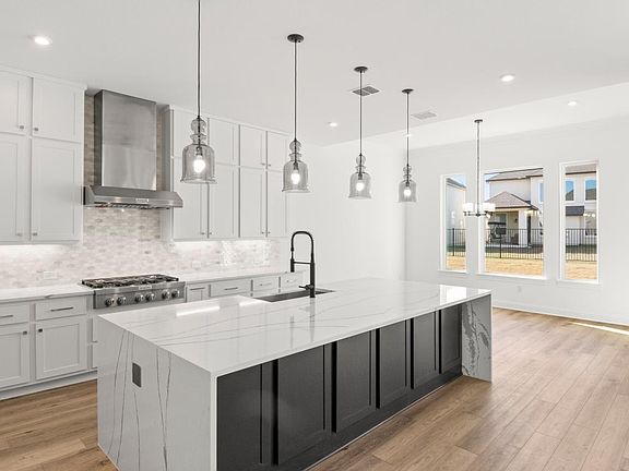 The elegant Longview Tuscan plan offers an impressive stucco finish. Through the covered entry, you will enter into a two-story foyer with a stunning curved staircase. A private study provides space to work from home. Overnight guests will enjoy a secluded guest suite with full bath and walk-in closet. The spacious great room features a gas fireplace and multi-slide doors to the covered patio. The open kitchen has a center island, casual dining area, stainless steel appliances, and generous walk-in pantry. The main-floor primary suite features a lovely cathedral ceiling and full bath with separate tub and shower, dual vanities, and linen closet. The upper level includes a large game room with attached media room and two sizeable secondary bedrooms with full baths. Located in an amenity-rich community with Texas Hill Country views, this is the home you have been dreaming of. Disclaimer: Photos are images only and should not be relied upon to confirm applicable features.