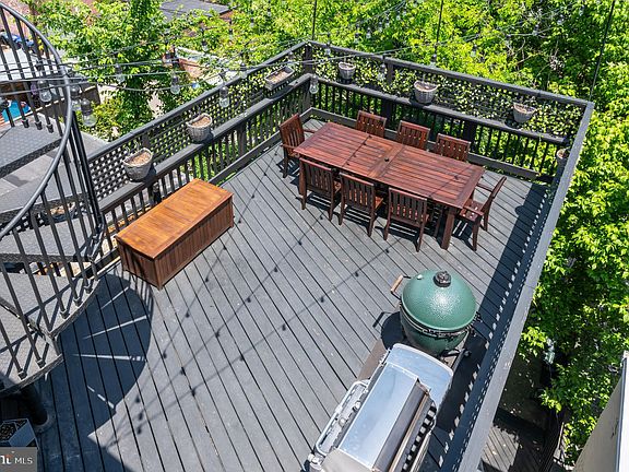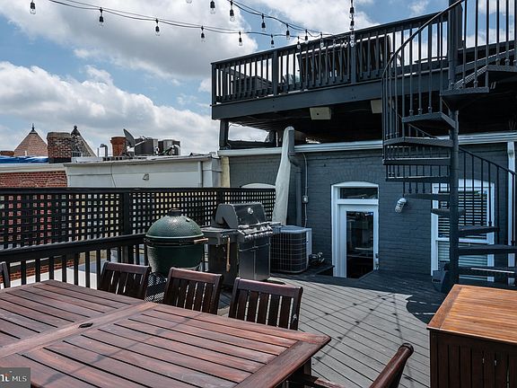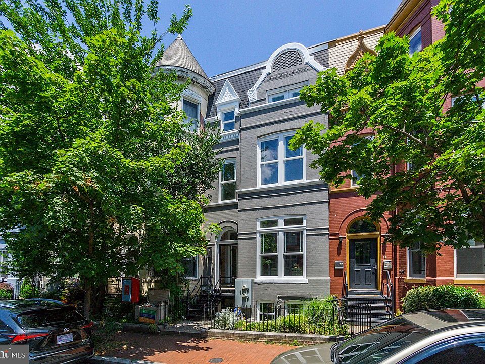 This rare and expansive four-story rowhome is among the largest historic residences on sought-after Westminster Street NW. Blending timeless character with modern luxury, it offers generous indoor and outdoor living spaces, sophisticated finishes, and an enviable location. Step through a gracious double-door vestibule into an open living and dining area, where exposed brick walls and two glass-tile fireplaces create a warm, contemporary feel. Refinished white oak floors extend throughout the home, while a fully integrated three-floor audio system and dual-zone Nest-controlled HVAC add comfort and convenience. The showpiece of this level is the 25' x 12' chef’s kitchen, designed for entertaining. It features a professional six-burner range with griddle and double oven beneath a commercial hood, plus an oversized 34" refrigerator and matching freezer. A substantial island with seating for five complements the space, leaving room for a breakfast table. At the rear, a secure 18.8' x 18.7' parking pad provides easy access. The second floor includes a south-facing bedroom suite, as large as the primary suite, offering a cozy reading nook, en-suite bath, and walk-in closet with ELFA shelving (a feature shared across all bedroom closets). A second bedroom opens to a private balcony, while a third is ideal for a home office or nursery. A hall bath with soaking tub completes the floor. The third floor primary suite is a private retreat, featuring two double-door closets, a Juliet balcony and a spa-inspired bath with dual vanities, soaking tub, and a multi-head frameless glass shower. This level also includes a powder room and wet bar with wine fridge, prep sink, and ice maker—perfect for entertaining on the expansive 14' x 24' terrace. From here, a spiral staircase leads to an 18' x 24' rooftop sundeck with sweeping 360° views of DC, including the Washington Monument. In all, the home offers over 800 sq. ft. of above-grade outdoor living space. The fully finished lower-level functions as a separate two-bedroom, one-bath apartment, ideal for guests, an au pair, or rental income (most recently leased for $2,995/month). Nestled just steps from Westminster Park, the home is within easy reach of Shaw and Logan Circle’s acclaimed dining, shopping, and conveniences—including Whole Foods and Trader Joe’s.