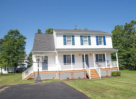 Come see this like new 3 bedroom, 2.5 bath home in the heart of Chesterfield just minutes from 288! Downstairs features large family room with gas fire place, pre-wired surround sound. Separate dining room with hardwood floors, large open kitchen with eat in breakfast nook and pantry. Downstairs utility closet and half bath off kitchen. Upstairs is 3 full bedrooms with large master suite complete with walk in closet and jetted tub in the master bath. 2 more bedrooms upstairs with full bath. Large custom deck out back with spacious backyard, large play area and storage shed. Paved driveway in cul-de-sac lot. Two zone heat pump and downstairs unit was replaced in 2015. Hot water heater only 3 years old. Call today to schedule your showing because this one will not last long!