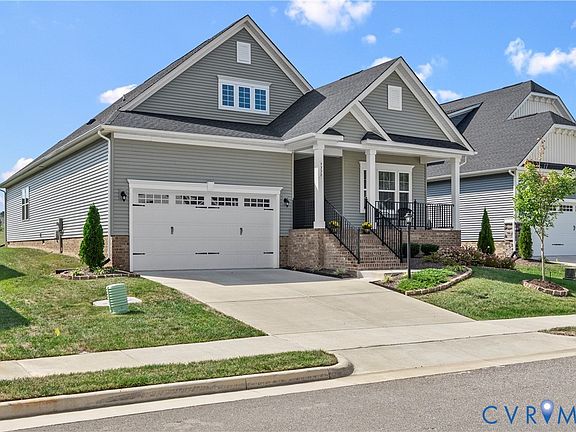 Welcome home to this desirable 3 bedroom, 2 bathroom, one-level living home in the desirable Kenbrook (55+) section of Harpers Mill! This home exudes curb appeal with fresh landscaping, a 2-car garage, and a full covered front porch. Step inside to an inviting foyer where you’ll notice thoughtful upgrades including durable LVP flooring. Just off the foyer, a flexible bedroom space is perfect for a home office, den, or guest room. The gourmet kitchen is a true centerpiece, featuring quartz countertops, a large center island with bar seating, stainless steel appliances, a gas cooktop, upgraded tile backsplash, under-cabinet lighting, and a deep single-basin sink. A cozy dining area flows seamlessly into the spacious family room, complete with a gas fireplace and access to outdoor living. The private owner’s suite offers a peaceful retreat with a walk-in closet, spa-like Roman shower with frameless glass door, dual vanity, and tile flooring. A generous third bedroom with plush carpet, double-door closet, and access to a full bath provides comfort for family or guests. Enjoy year-round relaxation in the screened-in porch with ceiling fan, composite decking, and beautiful backyard views. Kenbrook residents enjoy included yard maintenance along with exclusive access to neighborhood amenities including a state-of-the-art clubhouse, pickleball courts, pool, nature trails, and sidewalks. This 55+ community has private amenities while enjoying all that the Harpers Mill neighborhood includes.