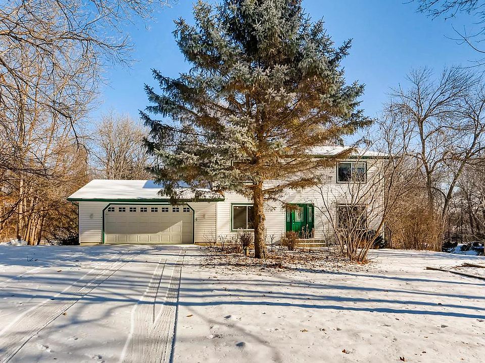 Classic 2-Story Home is located on quiet, beautiful tree-lined street with privacy & wooded views. Freshly painted, this home is clean, light & bright! Updated baths, 2 gas fireplaces, newer carpet, walk-out lower level to huge patio, maintenance-free deck. Lower level is totally refreshed, repainted, with new carpet! Oversized 2-car garage with extra parking pad for boat/trailer/RV, plus a 2nd garage under main garage! Wonderful yard space for play. Newer siding & windows make this a move-in ready home.