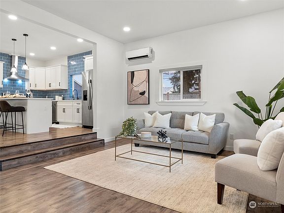 Beautifully updated just 2 years ago! This 2 bed 1 bath home features Quartz counters, white cabinets, tile backsplash, SS appliances, laminate flooring, upgraded carpet, new light fixtures & paint! Back bonus room could be used as a 3rd bedroom. Just shy of a 1/2 acre fully fenced. RV parking & a 30X40 1,200 Sq Ft shop. The lot is sub-dividable for future investment. Water already connected to public and sewer is in the street. Close to JBLM!