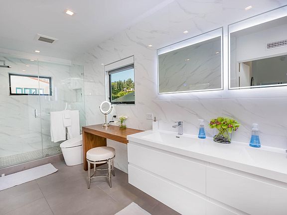 Fully-furnished and turn-key. Available for short and long-term rentals. One of a kind, brand new, gorgeous fully-furnished 3 bedroom/4 bathroom home located in the luxurious Beverly Hills. This modern style property sits in a private, gated community. The property features a tennis court, a massive 40 foot pool and jacuzzi, and 5 car parking! You will be captivated by smart house technology, and even more dazzled by the breath-taking views of the city. There is no other property like this!