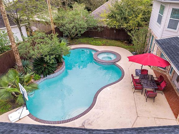 Never flooded! Great 5 bedroom home with a heated pool and hot tub in Klein. This home has great updates with a beautiful kitchen with granite and gorgeous backsplash. The large master suite includes a large renovated bathroom. The open concept home features a large living room with high ceilings, surround sound, built-ins, a gas fireplace and is perfect for entertaining. There is a Second bedroom down with renovated bath, which is in a separate part of the house. The study is perfectly located away from the traffic areas of the home. Three large bedrooms upstairs with two renovated baths & large game room. Excellent backyard oasis with pool and spa. New sod & Mulch in the front yard. Oversize lot with 3 car garage. Take a short stroll to the neighborhood pond, visit the stocked pond for a day of fishing or spend the day on the golf course without leaving the neighborhood. Close to HWY 99 or HWY 249 for easy commutes. The roof is only 4 years old. This home has it all!