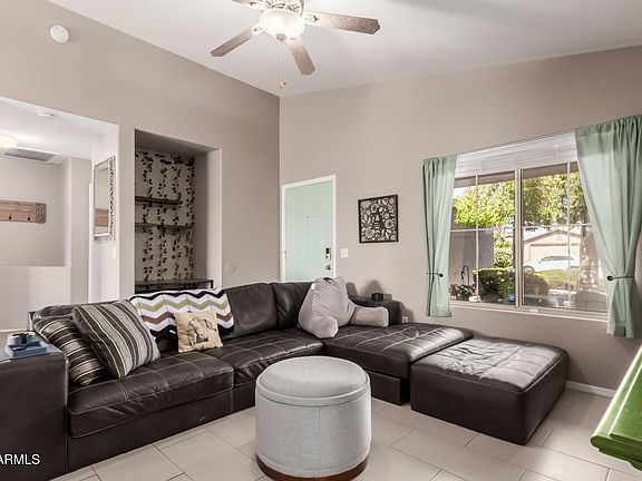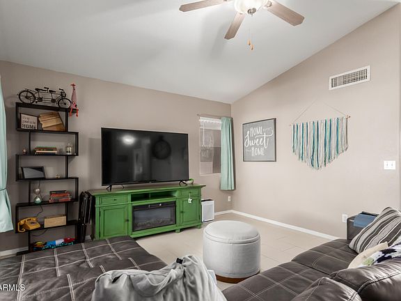 Welcoming 2-bedroom, 2-bath home offering both comfort and convenience in a prime location. Vaulted ceilings and abundant natural light create a bright, airy feel throughout. The kitchen features a nice sized pantry as well as a dining nook with direct access to the covered patio, ideal for relaxing or entertaining. Tile flooring extends through the main areas with carpet in the bedrooms. The spacious primary suite includes its own private bath, a tiled tub/shower surround and a generous closet. Easy-care landscaping a rocked front yard plus a backyard with synthetic grass and rock accents. Recent upgrades include a new air conditioning system and leased solar panels to help offset utility costs. Come see this charming home today and imagine making it your own!