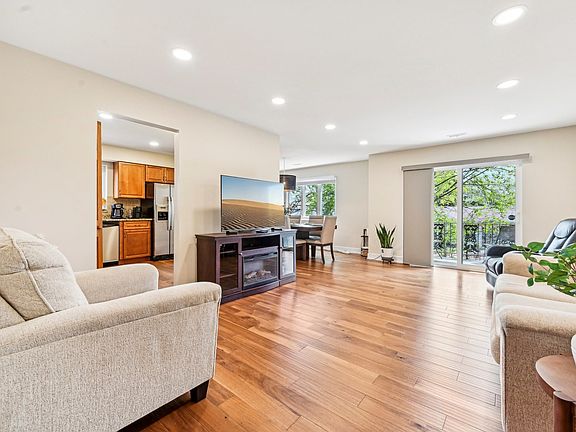 Welcome Home! A rare blend of thoughtful design, turnkey comfort, and resort-style amenities - all tucked inside a coveted gated community in Des Plaines. This freshly remodeled corner unit offers 2 bedrooms, 2 full baths, and over 1,400 square feet of beautifully updated living space. From the moment you enter, natural light pours into the expansive living room, where crisp engineered hardwood floors and modern recessed lighting create a warm, elevated atmosphere. The updated eat-in kitchen is both stylish and functional, featuring granite countertops, stainless steel appliances, and room for your favorite breakfast table. Just off the living area, a private balcony offers a peaceful spot to sip your morning coffee or unwind after work. The primary suite is a true retreat, featuring dual closets and a refreshed en-suite bath with clean, timeless finishes. A spacious second bedroom offers flexibility for guests, work-from-home, or anything your lifestyle demands. Every detail has been upgraded, including new baseboards, solid-core doors with sleek hardware, and designer light fixtures throughout. Enjoy the convenience of an elevator building, on-site laundry, and your own covered parking space. Beyond your door, The Landings community delivers unbeatable amenities: swimming pool, tennis courts, playground, clubhouse with fitness center, game room, kids' playroom, meeting room, ballroom, and a library. Located minutes from Advocate Lutheran General, Main East High School, I-294, Metra, Lurvey's Garden Center, and local shops and restaurants. MUST SEE!