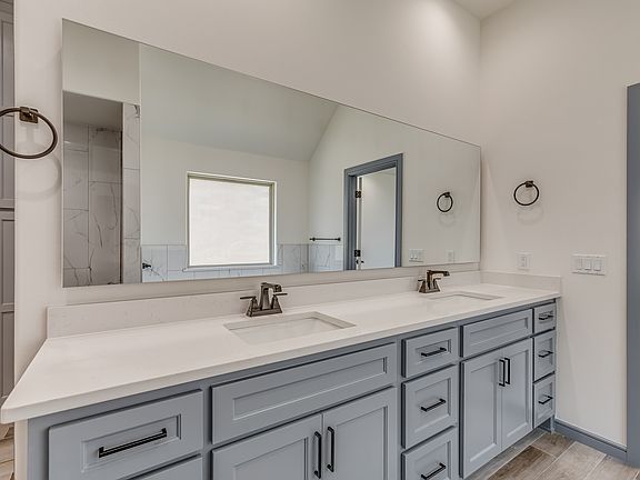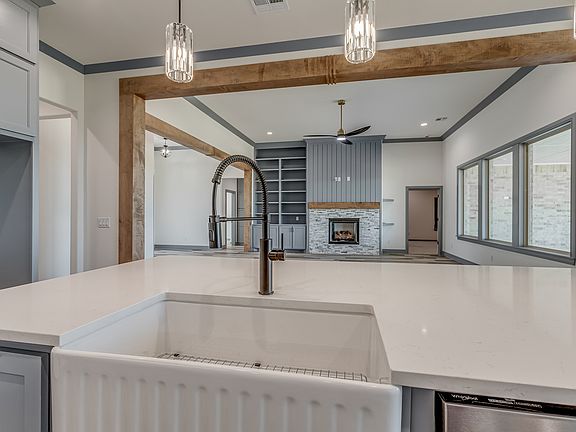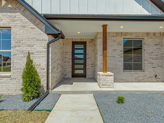 Great New Construction!; this property boasts an array of remarkable features. Inside you'll discover a generously proportioned 4 beds, 3.1 bath, 3 car garage, Study and Bonus Room. This open-concept gem is adorned with a living room featuring a gas fireplace, integrated custom shelving, a handy floor outlet, ceiling fan, & crown molding. Wood look tile throughout. The kitchen is the heart of the home, showcasing a sprawling island with storage space underneath and quartz countertops. High-end Whirlpool appliances, including a 5-burner gas stove top, double oven, dishwasher, microwave, and farm sink, pot filler,900cfm kitchen vent hood, large pantry, make this kitchen a dream. Enjoy large Covered Patio complete with a convenient natural gas line and TV plugins. 12 ft ceiling in living and entry area .10ft ceiling kitchen and bedrooms. Master bath has doorless walk- in shower with rain shower head, regular shower head and modern stand-alone soaker tub, dual sinks, the walk-in closet with clothes and shoe shelve plus 3 tier hanging racks and built in dresser. All rooms have walk-in closets with shoe racks/clothes shelves. Jack and Jill bathroom between 2nd and 3rd bedrooms. Mother-in-law suits has own bathroom. Bonus Room/Theater Room with HUB closet, Epson 3200 Projector with built in screen and 7.1 Denon receiver with 5.1 with Klipsch surround sound system. Laundry day becomes a breeze in the well- organized laundry room equipped with a sink, mud bench, hanging rack, & an abundance of shelves. The home is also equipped with a sprinkler system, a tankless water heater, & a high-efficiency HVAC system. EV (Electric Vehicle) charger in the garage. The house is completely wired for security system with a 7" touch screen. Situated in Mustang Schools, this property is ready to elevate your lifestyle! Please contact the listing agent for details.