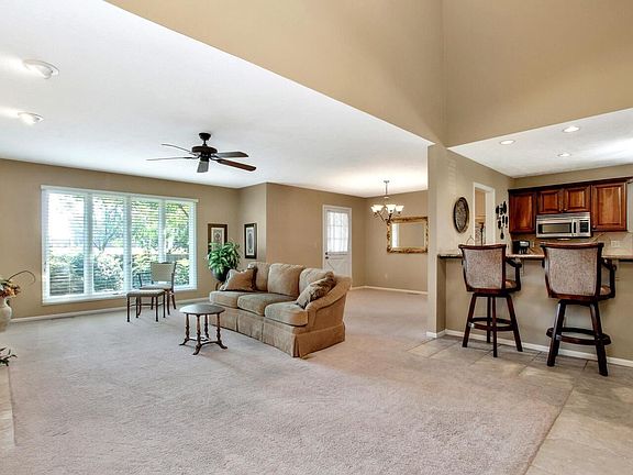 Lovely updated patio home in one of the best locations in Wichita. Tasteful, neutral palette includes gorgeous gas fireplace with travertine tile and remote control, expansive solid cherry cabinets in eat-in kitchen. Large main floor master with double closets, sliding door to patio, double granite vanity and private toilet and shower. Laundry on the main floor convenient to master. Upstairs is a wonderfully large bedroom with full bath and dble closets, could be used as a master, rec room, office, so many possibilities. Basement with full bath and daylight window offers a spacious rec room with room for pool table and more. 3rd br with daylight. Nice storage, new roof and ext paint means little to maintain. Enjoy shady evenings on the patio in private yard. Golf course community! List agent is related to seller.