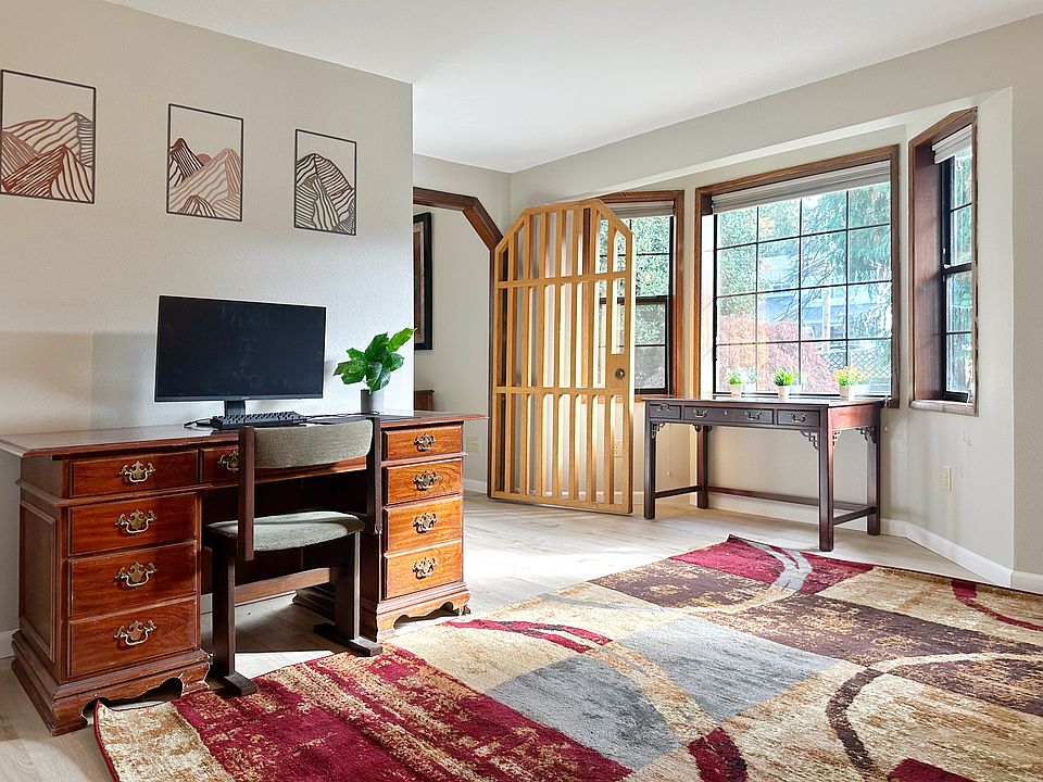 This unique place has a style all its own. Fully furnished unit available for mid-term rent. A large two level town house, we have recently converted the attic into a beautiful, peaceful living space. Enjoy a brand new kitchen and new furniture with fun views into the neighborhood. A king size bed and enormous bathroom will make your stay feel luxurious. Dedicated parking spot and free off-street parking.