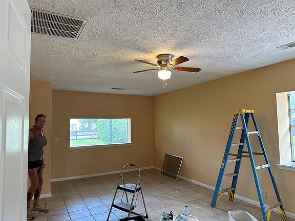Ceiling fansTile floorsLarge front yardRoomy roomsFull size kitchen