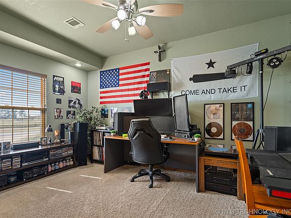 3BR 2.5 BA brick home on 3 acres in Love County, in Marietta school district. Open concept living area. Office could be second living area or 4th bedroom. Gas log fireplace. Geothermal cooling and heating. Fenced back yard. Covered patio with ceiling fans.