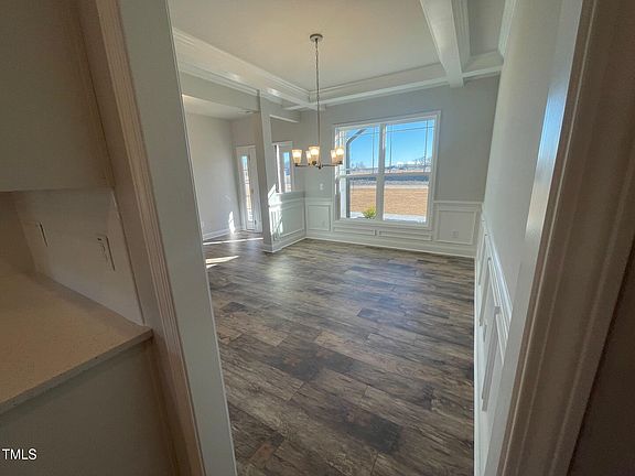 Prepare to be captivated by this exquisite 2239 square foot home, 4-bedroom, 2.5-bathroom home, nestled on a generous .69-acre lot. With coffered ceilings and a large, covered porch. This property offers luxury and comfort in every corner. Step inside to find a grand formal dining room that sets the stage for elegant gatherings, seamlessly flowing into a spacious open-concept living room—an entertainer's delight! The gourmet kitchen is a chef's paradise, adorned with beautiful granite countertops, soft-close cabinetry doors, and an oversized island that doubles as a focal point and gathering space for family and friends. Retreat to the primary bedroom oasis featuring a tray ceiling, a generous walk-in closet, and a spa-like bath with a luxurious 5' ceramic tile shower-a true sanctuary within your home.