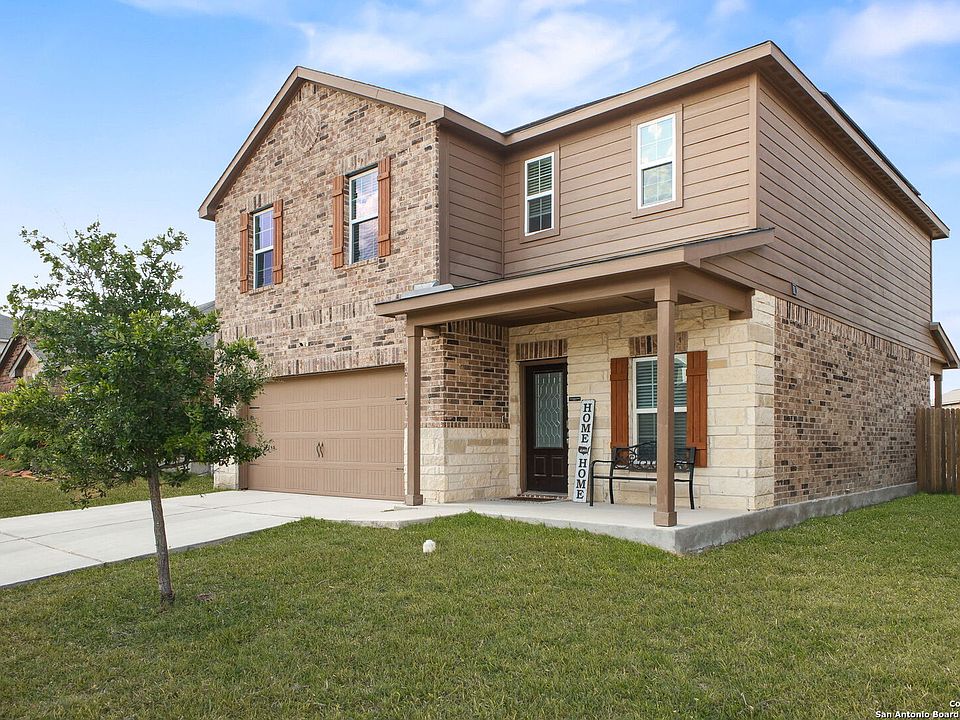 Welcome to 9335 Nubuck Branch - Where Modern Comfort Meets Convenience in the Heart of Converse, Texas! Step into this beautifully designed Shelby floor plan, a two-story stunner located in the highly sought-after Hightop Ridge community. With 4 spacious bedrooms, 2.5 well-appointed bathrooms, and an attached 2-car garage, this home is built to meet the needs of growing families, entertainers, and those who value both style and function. From the moment you enter, you'll notice the attention to detail and thoughtful upgrades that elevate this home above the rest. The inviting foyer features updated light fixtures that set the tone for the warm, modern feel carried throughout the home. The open-concept layout seamlessly connects the kitchen, dining, and living areas, creating a welcoming atmosphere ideal for entertaining or cozy nights in. Gourmet Kitchen with Designer Touches At the heart of the home, the gourmet kitchen is a chef's dream, featuring stainless steel appliances, upgraded India quartz countertops, and designer wood cabinetry that offers ample storage. The elegant backsplash and modern faucet hardware add an elevated touch, while the luxury vinyl plank flooring provides durability and beauty in equal measure. Whether you're preparing daily meals or hosting a gathering, this kitchen combines functionality with stylish design. Comfortable Living with All Bedrooms Upstairs Upstairs, you'll find all four bedrooms thoughtfully positioned, offering privacy and peace away from the main living areas. The laundry room is conveniently located on the second floor, minimizing trips up and down stairs. Each bedroom is enhanced with upgraded ceiling fans for comfort and energy efficiency, and generous closet space ensures plenty of storage for the entire household. Stylish Bathrooms with Quality Finishes The home's 2.5 baths have been upgraded with refined wall tile, enhancing the aesthetic and durability of these essential spaces. From the sleek fixtures to the tasteful color palette, every detail has been curated for a contemporary look and feel. Outdoor Living Made for Enjoyment Step outside to a distinctly extended backyard patio, offering the perfect setting for outdoor entertaining, BBQs, or relaxing evenings under the stars. This outdoor area provides a blank canvas for your future gatherings, gardening projects, or simply enjoying your morning coffee in peace. Modern Upgrades You'll Love This home comes fully equipped with premium, move-in ready upgrades, including: Faux-wood blinds on all operable windows for added privacy and style Wi-Fi-enabled garage door opener for smart home convenience Updated light fixtures in the kitchen and foyer Luxury vinyl flooring throughout, including wet areas, combining durability with upscale aesthetics Prime Location in a Growing Community Nestled within the emerging Hightop Ridge neighborhood, this home offers easy access to all that Converse and the greater San Antonio area have to offer. You're just minutes from: IKEA, HEB, and The Forum at Olympia Parkway for shopping Loop 1604, Loop 410, I-35, and I-10, ensuring quick commutes to Randolph AFB, Fort Sam Houston, and downtown San Antonio Dining, entertainment, parks, and future walking trails within the community As the Hightop Ridge neighborhood continues to develop, you'll enjoy access to a community park and upcoming walking trails, perfect for staying active and meeting neighbors. Whether you're a first-time homebuyer, relocating to the San Antonio area, or simply looking for more space in a fantastic location, 9335 Nubuck Branch offers a rare opportunity to own a thoughtfully upgraded home in a thriving community. With a functional layout, tasteful finishes, and unbeatable convenience, this home checks every box on your wish list. Don't miss your chance to tour this exceptional home - schedule your private showing today and make 9335 Nubuck Branch your new address in beautiful Converse, Texas!
