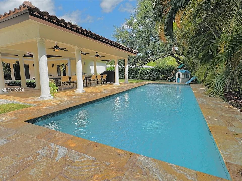 North Pinecrest! Spacious and bright home in best school district. Natural light from expansive impact windows and doors with views of courtyard and pool featuring a great layout. High ceilings with 3 bonus rooms for office, study, gym, maids or playroom. Private backyard with covered terrace, gold travertine deck and fountain with newer pool. Pavers on circular driveway and room for boat inside gates. *** See Broker Remarks for Showing Instructions ***