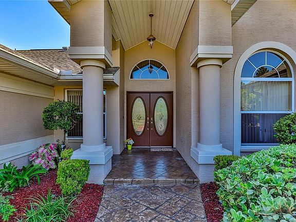 Absolutely elegant 4 bed + den/office, 3 bath pool home in Woodland Waters! Sitting on a 1.2 acre corner lot in the upscale community, this lovely home offers 3,344 sq ft of living space with soaring vaulted ceilings. Bring your vehicles; in addition to the 3-car attached garage, there is a 4-car detached garage with an additional room (1,500 sq ft total) that could be a man-cave or game room with 120/240 volt outlets. Spacious kitchen includes a breakfast bar, built-in desk, and even some stylish glass-fronted cabinets. Generous master suite has walk-in closets and a bath with dual sinks, a jetted tub, and separate walk-in shower. Enormous 660 sq ft 2nd bedroom has pool access and could easily be used as an in-law suite. Beautiful pavered lanai offers room to relax or entertain with a summer kitchen; or take a dip in the heated in-ground, screen-enclosed saltwater pool that overlooks the large back yard. Other unique features include a central vacuum and a surround sound system inside and outside! Conveniently located near US 19 for easy access to Homasassa, Tarpon Springs, and Clearwater. Mere minutes away from Weeki Wachee State Park and the famous mermaid attraction, as well as Pine Island Beach, Linda Pedersen Park, Jenkins Creek, and Bayport. This is a must-see home!