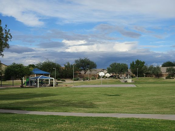 Fabulous great room plan in choice location - sides to a huge community park and backs to a greenbelt! This beauty has a north-facing backyard that is professionally landscaped, a large great room, 3 bedrooms - 3rd bedroom has double doors and can be used as an office or closet doors can be added to make it a 3rd bedroom. Oversized master with separate tub and shower and large walk-in closet is split from the other two bedrooms. Great U-shaped kitchen includes a refrigerator and the washer and dryer are included, too! This home has a home warranty also provided for the first year for the buyer! Hurry to see this amazing home - it's very special!
