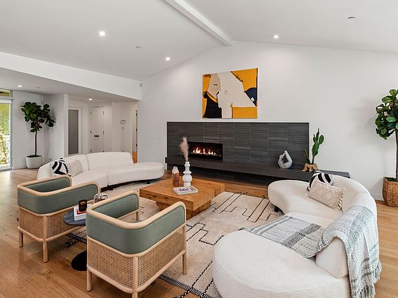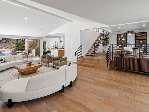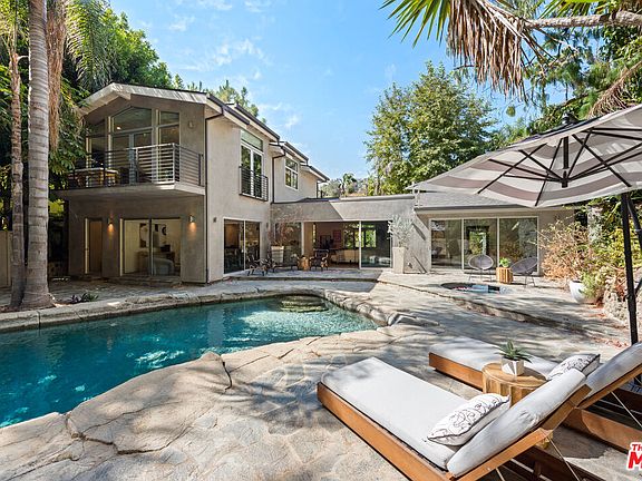 Situated in the desired Beverly Hills Post Office, welcome to your new Mid Century Modern oasis. Complete with floor to ceiling glass windows and an open floor plan, the home radiates bright natural light throughout. Warm and inviting, the home boasts soaring vaulted ceilings, expansive living spaces and a white bespoke gourmet chef's kitchen with top-of-the-line appliances and large waterfall center island. Showcasing 4 bedrooms in total, the primary suite takes up the entire upper floor with a large walk-in closet, spa-like bathroom with dual islands and a private balcony overlooking the grounds. A seamless indoor/outdoor flow draws you to the resort-like backyard with lush, matured landscaping, additional entertainment space, pool, and spa. This private sanctuary is one that you do not want to miss!