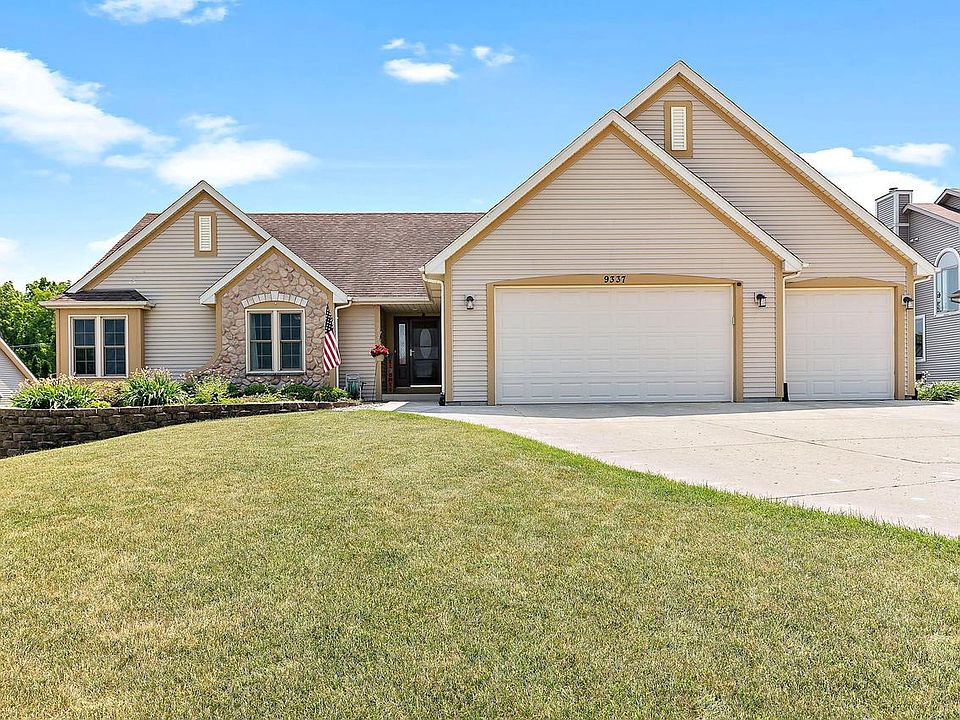 Welcome to 9337 Tamarack Ct. a stunning open concept ranch home located in a serene neighborhood with a county setting. Step inside and be captivated by the abundance of natural light that fills the spacious open living area, enhanced by vaulted ceilings that add an airy, expansive feel. The open concept design seamlessly connects the living room, dining area, and kitchen, making it an ideal space for entertaining friends and family. Indulge in the tranquility of the master suite,complete with a luxurious master bathroom boasting double vanities and a walk-in closet. The finished basement with high ceilings provides endless possibilities for recreation and relaxation. Embrace the outdoor oasis that awaits in the fenced backyard and lounge by the inground pool, perfect for hot summer day.