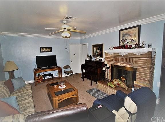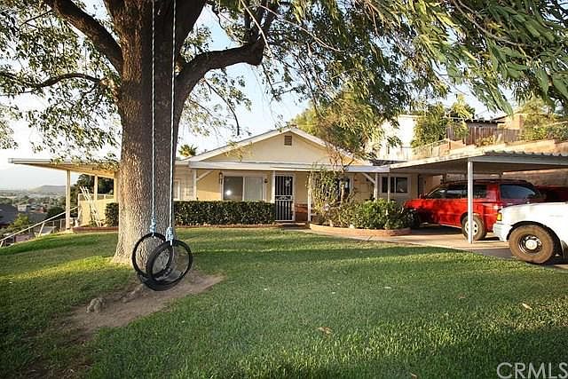 Don't miss this adorable home situated on approximately acre lot with Views. Enjoy the sunset or the City lights from your covered frontporch or front yard. Spacious Living room with a brick surround fireplace and crown molding, kitchen overseeing the dining room with tileflooring and crown molding. Home office with free standing and built in desk and cabinets. Other amenities are: Wrapped around aluminumpatio cover, sun room, Covered patio, car port, and much more. Close to schools, shops, golf courses, freeways (91, 60 and 15).