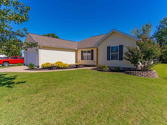 Beautiful UPDATED ranch style home on a quiet cul-de-sac in McCutchanville! This 3-bed, 2-bath home features an open, split-bedroom layout with a vaulted great room w/laminate flooring, see-through fireplace, and French doors leading to a private, newer aluminum fenced backyard with patio—perfect for relaxing or entertaining. The spacious kitchen offers ample new cabinetry, updated countertops, added backsplash, a breakfast bar, and an adjoining dining area. Laundry w/ added shelving and shiplap is off the kitchen. The large primary suite includes a walk-in closet w/ dual vanities and oversized shower. Both additional bedrooms feature walk-in closets. Hall full bath updated with new flooring, vanity, shiplap and fixtures. Recent updates: New roof (2023), All New carpet (2025), furnace and ac (2021), water heater (2025), kitchen/laundry room & fence (2020), updated baths (2021 & 2024), and interior paint. 2-car garage includes extra space for a workshop or hobby area. Move-in ready and a must-see!