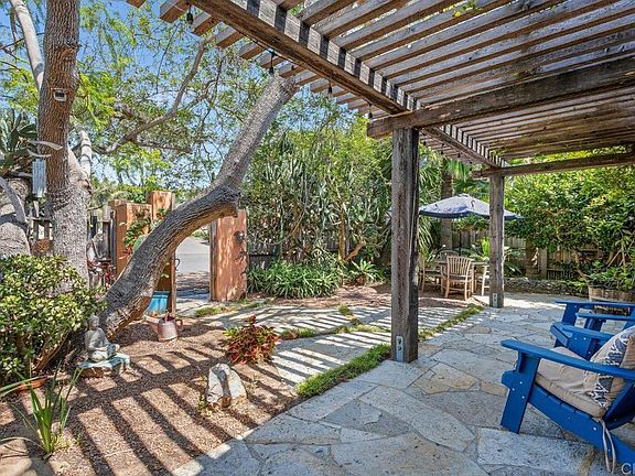 One of the best locations in Encinitas Highlands. This adorable beach house on a 9600 sq. ft lot is West of I-5 and only a couple of blocks to Swami’s State Beach access and Downtown Encinitas. The main home has Vintage solid oak plank hardwood floors, open beam ceilings, custom front door, solid core doors, Anderson windows and updated kitchen with high end appliances including a Viking 6 burner stove and oven, Miele dishwasher, Jenn Air refrigerator, honed granite counters, farm sink and all wood high end cabinetry. The baths have been remodeled, with one featuring an amazing vintage claw foot tub, plus wainscot walls. The entire second story is the master suite offering a wonderful place to relax with total privacy. Property has owned solar. The detached 1-bedroom accessory unit is approximately 670 and has a full kitchen with a 4 burner Viking range, mini split AC/Heating, Saltillo Tile flooring, high beamed ceilings, and tons of living space along with a private patio and side yard area. If you are an artist there is another special detached artist studio retreat where you can spend endless hours painting to your heart’s content. The large lot provides tons of space which has been beautifully landscaped all on automated drip irrigation. One of the most striking features is a gorgeous jacaranda tree which is currently in bloom, plus numerous fruit trees including lemon, lime, grapefruit, orange and tangerine. The huge yard offers a perfect place to garden, or a delightful quite place to relax and simply enjoy the beautiful California sunshine.