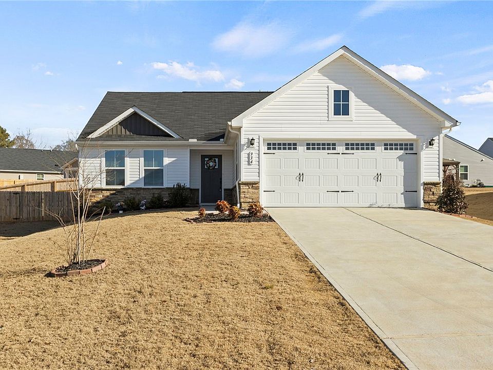 This beautifully designed 3-bedroom, 2-bathroom Craftsman-style home offers modern comfort, convenience, and style, all in the desirable Olivia Springs subdivision. Built in 2023, this single-story home combines thoughtful features and an open floor plan, perfect for families, professionals, or those seeking a low-maintenance lifestyle. All bedrooms and bathrooms are conveniently located on the main level. The Open Floor Plan is ideal for entertaining or family gatherings. Through out the home you’ll see High-End Finishes: Smooth ceilings, granite countertops, luxury vinyl plank flooring, and skylights, and split floor plan for added privacy. The kitchen has granite countertops which complement the stylish, functional design. The home also features a gas tankless water heater for on-demand hot water. Enjoy a charming patio for relaxing or entertaining, and underground irrigation to maintain the landscaped yard. Are you tired of doing the lawn? The Olivia Springs subdivision offers common areas, landscaping, and lawn maintenance included in the HOA. This gem is located in a quiet corner cul-de-sac lot for added privacy and tranquility. This turnkey home offers everything you need: style, functionality, and convenience. Schedule your showing today to see why this property is perfect for you!