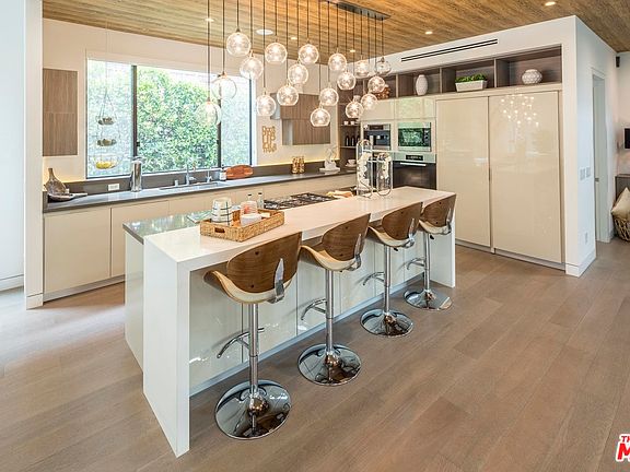 Spectacular Contemporary with soaring ceilings, open floor plan and pocket sliders creating disappearing walls for a quintessential California lifestyle. Spacious master suite with his/her baths and steam shower, fireplace and lounging terrace. Chef's kitchen open to public rooms for that magical entertaining flow. Outdoor living room with fireplace in a private setting with grassy yard and self-contained gym/office. One owner, Trophy property built in 2014 with apx. 3700 sq ft, filled with light. Just three blocks from the much-anticipated Caruso shopping and dining center in Palisades Village.