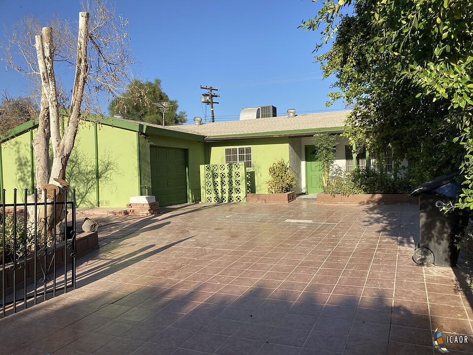 Nice home for sale in Calexico, in a well-established neighborhood. It's surrounded by mature trees and a wide variety of plants. This is a real cozy 3 Bedroom one bath home, with a fresh coat of paint in the interior and brand-new ceramic tile floors in the living room and hallway. It comes with a one car garage and a driveway wide enough for 3 cars. Home has a nice, covered porch with permits.