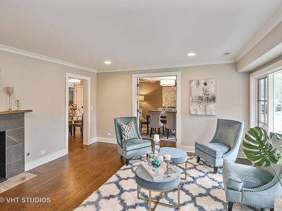 STUNNING RENOVATION! Completely rehabbed, gorgeous ranch home in sought-after location. All new plumbing, windows, electric, duct work, water service, utilities, landscaping, driveway, & so much more. Incredible flow with 5"wide oak hardwood floors throughout. Breathtaking, open-concept kitchen with quartz countertops & island, all new cabinetry, professional SS appliances, & large eat-in breakfast area. Separate formal dining rm has coffered ceilings & French doors, connecting to front living rm with 2nd fireplace & picture window. Enormous master suite w/fireplace, his & hers walk-in closets & double vanity in master bath. Family rm w/glass sliders open to stone paver patio w/decorative outdoor lighting and brand new, extensive landscaping and fenced in yard! Sweeping front yard w/new turnaround driveway & covered porch. Attached 2-car garage leads into spacious mudroom with lots of storage. So much space, closets everywhere! An absolute gem!