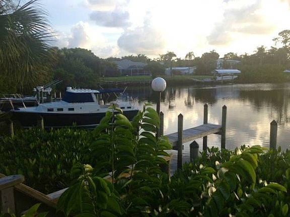 Brokers/Agents welcome at a 3% commission structure............... If you have or want a boat, this is the condo for you. Docks on canal with access to the river available for only $20/month. Largest vessel docked currently is 31' . 2 Bedrooms,1.5 Bathrooms. Interior Space: 1,056 sqft. at Half Mile Lake Condominiums in Stuart. In this North River Shores Community, you can walk, bike, or cruise to shops, restaurants in downtown Stuart. All appliances included. Front load washer and dryer are in the unit. Windows are dual pane hurricane impact. Heated community pool. Water, Sewer, Trash Removal, and Basic Cable included in the $275/month fee. 1 assigned parking space. No trucks or motorcycles/scooters. 1 small pet allowed. For additional details and set a time to look at it, text to 4132377377. Brokers/Agents welcome at a 3% commission structure