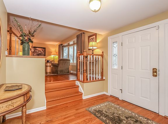 Don't miss this rarely available move-in ready Jamestown model on a large cul de sac site. Entertainment sized living room and formal dining room with hardwood floors. Updated kitchen with maple cabinets, solid surface counters and hardwood floor. First floor family room with built-in media center and sliders to the brick paver patio in the expansive fenced yard. Upstairs are three bedrooms and two full updated baths. A fourth bedroom on the main floor is a perfect guest room or office. The finished sub-basement comprises a recentlly finished recreation room, pleasant light-filled laundry room and storage area. Newer windows throughout. Furnace 2010. Master bath remodel 2014. Tear-off roof 2014. Great location near schools, parks, shopping, restaurants with easy access to I-90 and the Woodfield area.