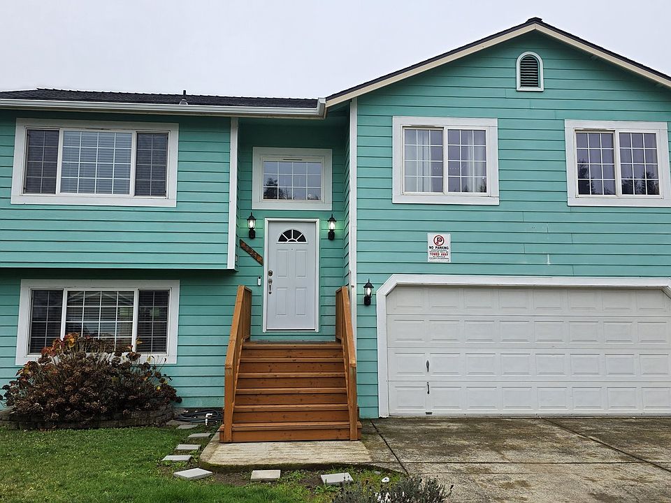 Split level home in Thurston. Upper level has main living area with 3 bedrooms, full bathroom, dining and kitchen. Primary bedroom and dining area have sliders to access large upper deck. Lower level has a family room with kitchenette, laundry, full bathroom, and a slider to stained and stamped concrete patio. Fenced and gated yard with smaller RV/boat parking area. Apple tree. ADT security. Tenant occupied. 24-hour notice to show.