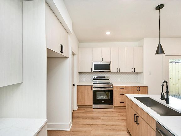 Stylish bathroomsWood-look low-maintenance floorsWhite quartz countertopsBrand-new appliancesDesigner kitchenTwo-tone cabinetryMatte black fixtures