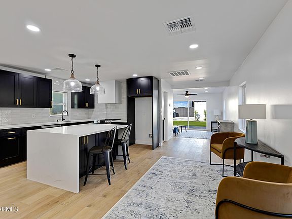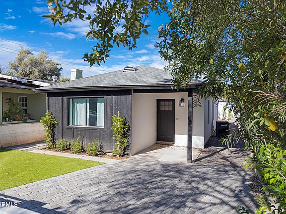 Rare opportunity to own in Tempe's Gage subdivision. Completely renovated & fully furnished home. Turf & pavers in the front yard. Main house is just over 700sqft w/ full kitchen, bedroom, and full bath. Custom cabinets, designer tile & light fixtures throughout! Waterfall eat-in island, dark custom cabinets & hanging light fixtures in the kitchen. Detached guest house includes kitchenette, living space & full bath. Backyard is an entertainers delight w/ pavers & large grassy area. Large gate in the back allows for alley access & parking in the backyard. Walking distance to ASU, the light rail, Mill, dining & shopping & much more!