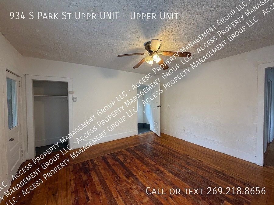 934 S Park St Upper Unit is a large 3 bedroom apartment located near Burr Oak and S. Park St. This unit has two entrances - one in the front on the porch and one in the rear near the parking area.