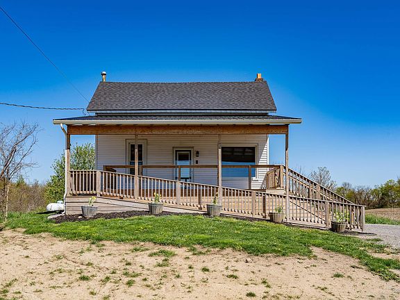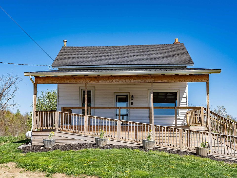 Step into a timeless oasis of rural charm with this 1900 sq ft white farmhouse, nestled on 1.3 acres of picturesque land. From its welcoming covered front porch, the serene views from atop the hill invite you to stay awhile. As you approach along the long drive, you're first greeted by the sight of the rustic white barn, hinting at the idyllic lifestyle awaiting you. To your left there are new maple, cherry, and tulip trees, planted and ready to grow. This home in the country WOWs with it's resume of recent upgrades, ensuring both beauty and functionality for years to come. Some that stick out are the tankless water heater, a brand new roof, all-new windows, a months old septic system, a RO system, and a new furnace/AC, peace of mind comes standard with this farmhouse retreat. The main level offers contemporary charm and convenience, featuring an office space perfect for remote work, a spacious living room for relaxation, and a homey kitchen adorned with stylish two-toned cabinets and a large stainless steel farmhouse sink. A well-appointed bathroom, bedroom, and a large laundry room complete this level, providing comfort and convenience at every turn. Venture upstairs to discover three inviting bedrooms, each graced with vaulted ceilings that add an airy, spacious feel to the living quarters. Whether it's a peaceful night's rest or a quiet retreat for reading and relaxation, these bedrooms offer the perfect sanctuary. Outside, the enchanting grounds beckon with their potential for outdoor living and recreation. A charming chicken coop stands ready in the back, while the sprawling front yard offers endless possibilities for gardening, entertaining, or simply enjoying the beauty of nature from your front porch. With its perfect blend of historic charm and modern updates, this farmhouse is more than just a home—it's a lifestyle. Don't miss your chance to make memories in your own rural retreat- reach out today!