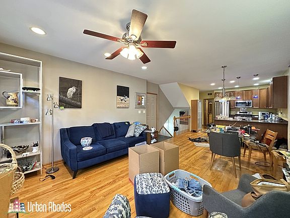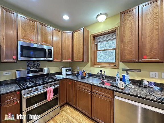 Three bedroom, three bath plus den/family room condo plus quality duplex in Uptown walkup features central air, top of the line kitchen with all stainless steel appliances, granite countertops, gas oven/range, dishwasher, microwave, fridge, large combination living and dining rooms, spacious den, hardwood floors, huge bedrooms, two fireplaces, upgraded bathrooms with Jacuzzi tub, deck, in unit laundry, one garage space and one outdoor parking space included in the rent. Truly a must see! No pets, please