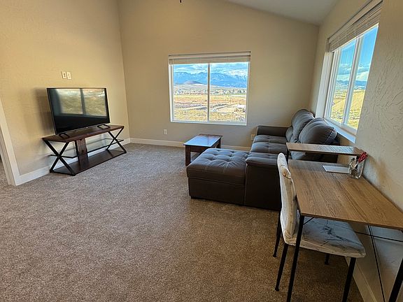 Fully furnished, move in ready short term or long term rental with all utilities and internet included. This unit has amazing views and is just a few months old. Located in a nice and quiet subdivision just outside of town - 10 minutes to grocery stores, gas stations, and restaurants. Has a full size kitchen with all full size appliances (fridge, oven, microwave and air fryer). Free access to washer and dryer on site. Concrete parking for 1 vehicle and additional parking available. 10x4 outdoor storage shed with a lock, great for bikes or other storage needs. The unit is available November 1st. Reach out with questions or to fill out an application.