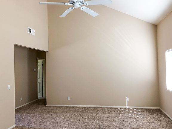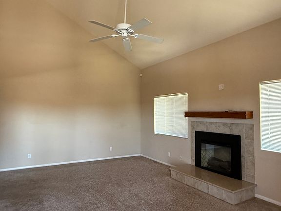 This lovely 3 bedroom, 2 bath home with detached 2-car garage is on a corner lot with fenced back and side yards. House has central heat and A/C. In the living room is a remote-control electric fireplace. The large country kitchen/dining area is equipped with refrigerator, gas oven/stove, microwave and dishwasher and hookups for washing machine and gas or electric dryer. The living room and master bedroom have vaulted ceilings with fans. Large attic and basement storage/shop area. Twice weekly landscape maintenance paid by owner. Tenant pays gas, electricity, and trash disposal. Landlord pays water. Walking distance to elementary school. Non-smokers only. Income must be 2.5x rent. Credit score at least 680 First, last & security deposit. Pets may be considered. Available August 1st. Calls will be returned. To be determined. Applications, background and credit checks required though not necessarily through Zillow.