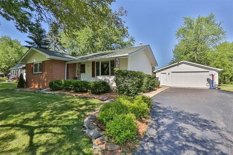 Exceptionally maintained 3bdr, 1.75bath Ranch w/ detached 2.5 car garage & finished basement situated on nearly 1 ACRE lot with NO backyard neighbors rather a beautiful pond to view. Fully landscaped + LARGE storage shed w/loft. Enjoy the benefits of this spacious, well kept backyard w/invisible electric fencing. UPDATED kitchen: new cabinets w/modern hardware, Formica CT, white appliances (all included)& pergo style flooring. ALL bdr's have new carpeting. Basement completely remodeled (2015) features large rec. room, 3/4 bathroom, laundry area, & ample storage space. Poured concrete foundation. IMPROVEMENTS include: Roof(2012) AC Unit(2011) Sump Pump w/battery back-up(2013), HWH(2011), Well Pump & pump for lift station(2012). This SUPER CLEAN home is affordable living at its best! *Seller is willing to include the riding lawn mower w/an acceptable offer.
