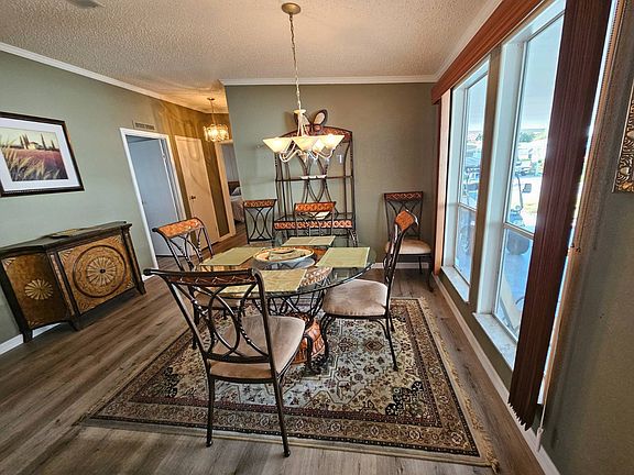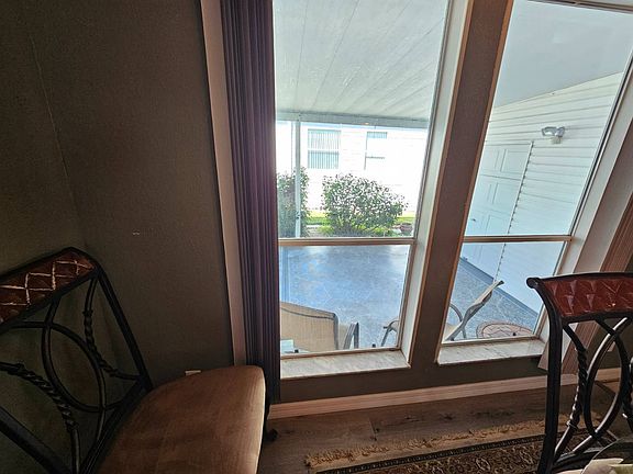 This 1995 Fleetwood is on leased land in a 55+ resort-style MH community in Lakeland, Florida. The residence offers 1,232 square feet of living space and features two bedrooms and two bathrooms. The open floor plan allows the dining room to transition seamlessly into the living area, providing a spacious and inviting atmosphere. The kitchen is appointed with quality cabinetry, an artisan copper tin backsplash, a large black stainless steel double bowl sink, and windows offering views of the sizable lanai with acrylic windows. The interior boasts predominantly textured walls, crown molding, tile and laminate flooring throughout, and full-length windows in the dining room. Hallways are generously wide, contributing to the overall accessibility of the home. The primary suite is well-sized, featuring a walk-in closet, and the ensuite bathroom includes granite countertops, a single vanity, and a shower. Currently, the guest bedroom serves as an office, and the guest bathroom contains a shower/tub combination as well as washer and dryer provisions. A highlight of this property is the Florida room, which features glass windows and a wall-mounted AC unit, offering scenic views of the fourth and fifth holes of the Big Cypress South Championship golf course-an ideal location for relaxation. Additional amenities include a rear patio. The home is offered turnkey and includes a golf cart. The home is on leased land; buyers do not own the land and must pass a background check, credit check, and meet financial requirements to obtain park approval to reside in this community. Residents pay a monthly lot lease ranging from $1100.00 and up and age restrictions apply. The fees include the use of two pools, two hot tubs, a fitness center, tennis courts, bocce ball courts, pickle ball and horseshoes and access to the clubhouse. The community also has an onsite Bar & Grill which features daily specials and monthly entertainment. Included are lawn mowing, biweekly trash pickup and a 24-Hour staffed guard gate. The community has two18-hole golf courses where residents may purchase membership or a 'pay as you play' option. All listing information is deemed reliable but not guaranteed and should be independently verified through current rates of lot rent, fees, or pass-on costs associated with the community, park, or home from the community manager.
