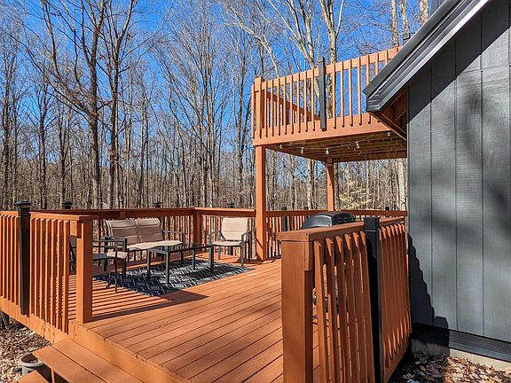 A unique opportunity to own an A-frame with all the furnishings. It is waiting to be your up north getaway with the rental income when you're not there. Includes all the furnishings and a large 12x24 storage shed. The large deck is perfect for entertaining in the summer. This home is centrally located. Less than 25 miles to Traverse City, Cadlliac or Beulah. Seller is a licensed Real Estate Agent. Buyer to verify all measurements and information.
