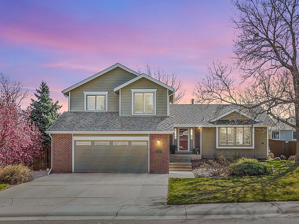 Make sure this Northridge Highlands Ranch gem is on your showing tour this weekend! Tucked away in a quiet and established neighborhood, it truly shines with incredible curb appeal, mature trees and a larger yard, the exterior wowing with classy and complimentary paint colors, stately brick, and you haven't even gotten inside yet! And don't miss the presidential class 4 shingles on the newer roof! And the inside doesn't disappoint! The entryway of this open floorplan graces you with tall ceilings, charming niche details and a neutral palette. The tasteful and understated light fixtures match perfectly with the on-trend white kitchen and light oak floors. The kitchen island adds utility, the built-in pantry and cabinets ensure plenty of space and the solid surface countertops and undermount sink makes cleanup a breeze! A cozy breakfast nook overlooking the backyard makes a perfect spot for relaxed meals. Plantation shutters throughout add elegance, filter the sunlight and create privacy, their continuity creating a homey and calming aesthetic. The kitchen flows easily to the casual living space, a whitewashed hearth the centerpiece and welcome touch for cool evenings. Upstairs, the two secondary bedrooms delight with added touch of a chair rail and large closets and the primary is a jawdropper- vaulted ceilings and an amazingly updated, spa-like bathroom with dual vessel sinks, a frameless glass shower and a sleek, mid-century modern style vanity. The walk in closet has fabulous built-ins, sure to help anyone organize! The finished basement has a three quarter bath, egress window and closet, making it a good flex space for whatever your needs are- fourth bedroom, in law suite, craft, rec or game room, etc! Head out back and this one will wow you again with a custom paver patio, raised planter beds, storage shed and privacy trees. Make this one yours and get on that back patio with a cool drink in just a few weeks!