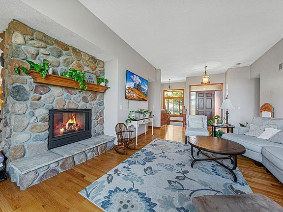 The living room is where you can relax by the charming see-through fireplace, all while taking in sunrises and sunsets through the large windows or step out to the expansive deck to soak in the serene lake views. The updated kitchen is a chef's delight, boasting a center island and elegant granite countertops, making meal preparation and entertaining a breeze.